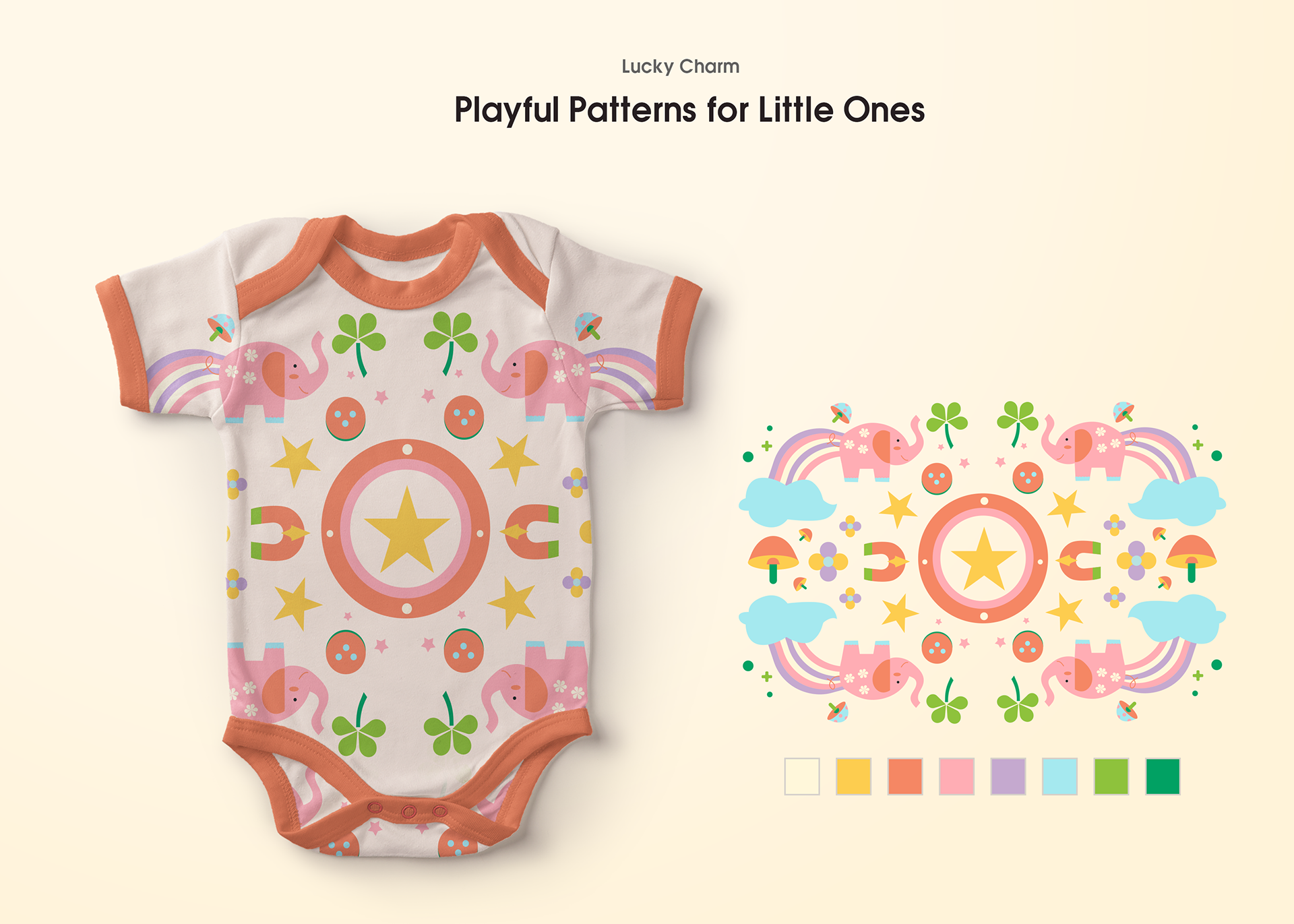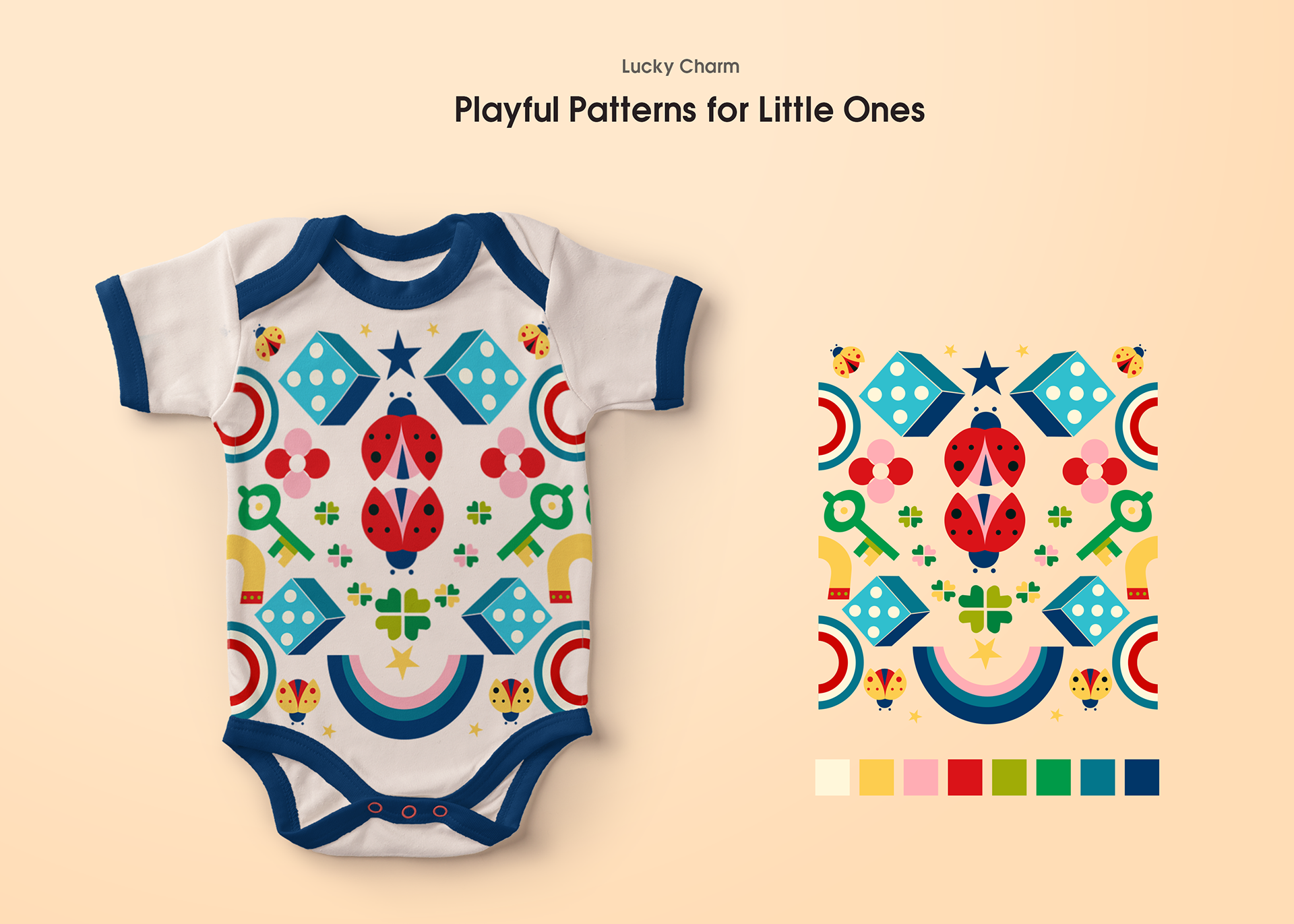 Explore my unique collection of baby apparel with lucky charm patterns,